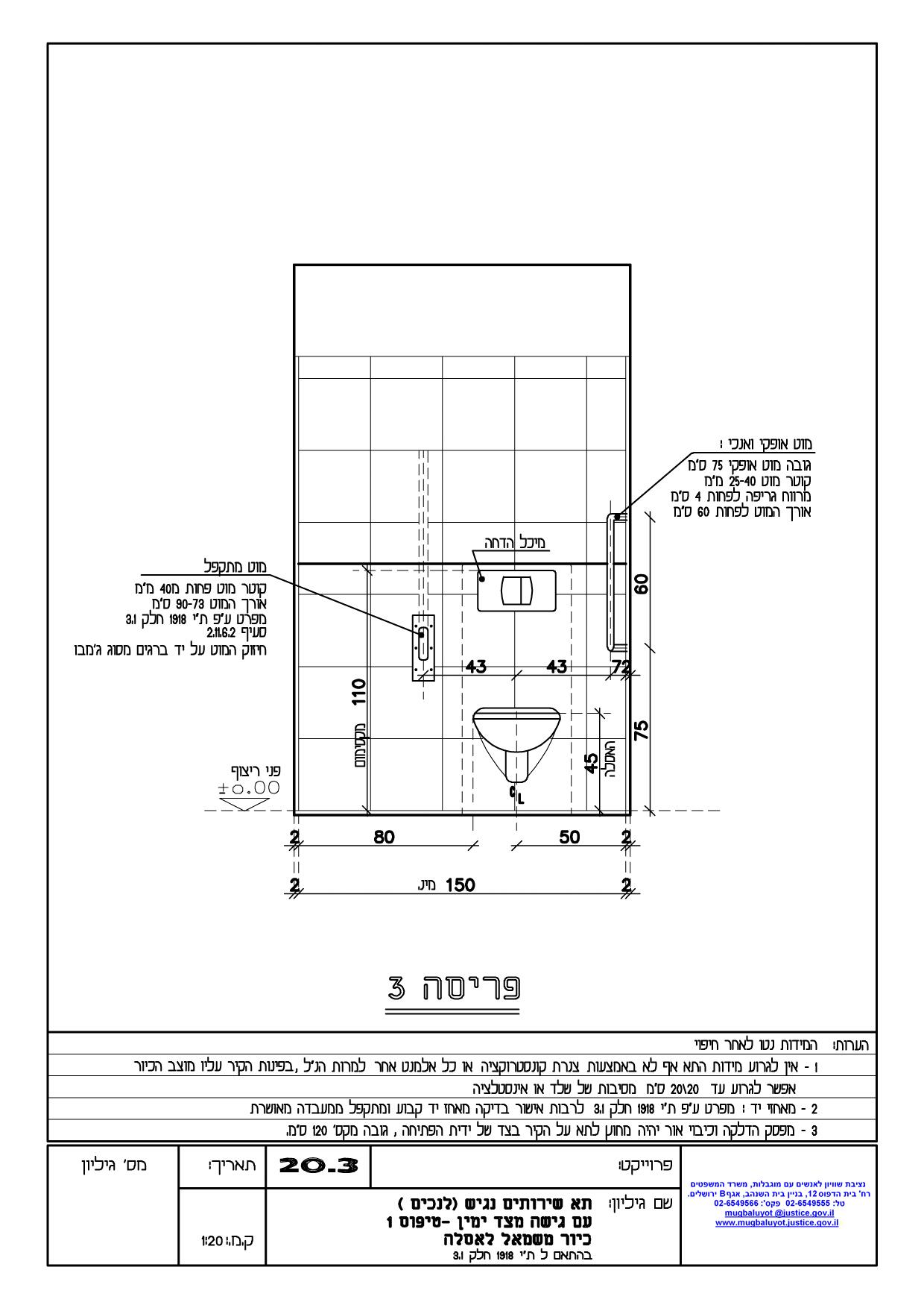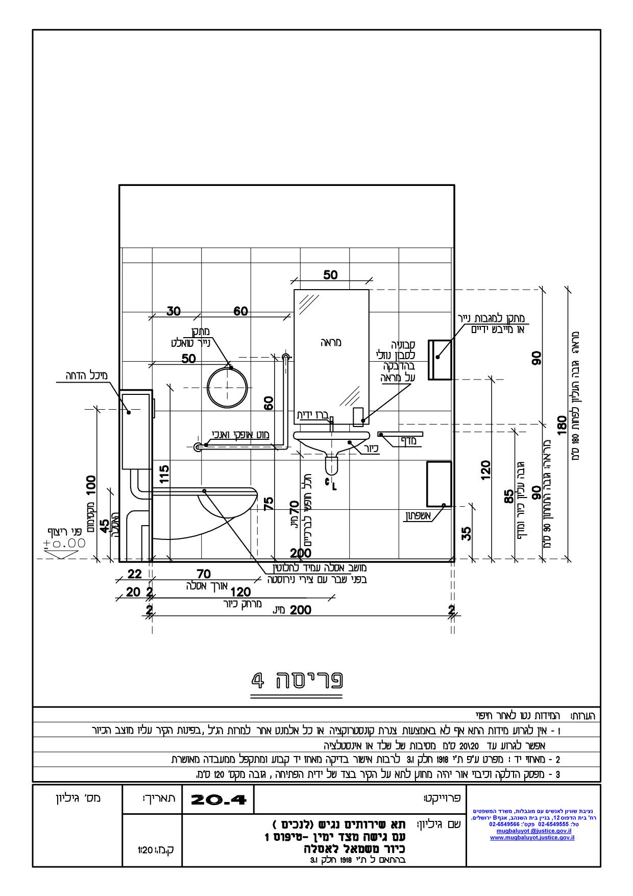 לצפייה במחשב – תכנית דוגמה – שרטוט שירותי נכים עם אסלה בצד – טיפוס 1 (5 פריסות בפורמט PDF)